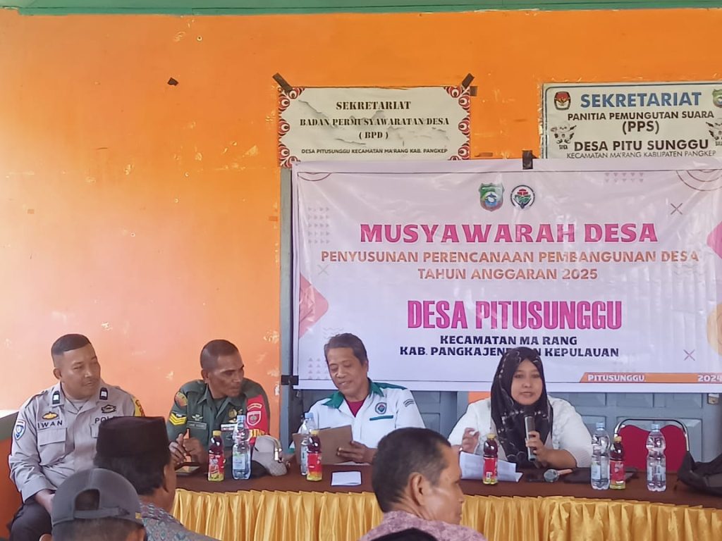 Pangkep,-Bhabinkamtibmas Polsek Marang Aiptu Iwan bersama Babinsa Serka Laode Muslimin ,Kepala Desa Jamilah Arifin ,Ketua BPD H.Naharuddin .S.Pd.MM.Pendampin desa dari Kecamatan, Hamka.S.Pi.mengikuti Rapat Musyawarah Desa dan Rembuk Stunting tatap muka serta Bhabinkamtibmas memberi himbauan serta penyuluhan hukum terhadap para Warga desa,dusun , RK dan RT di Desa Pitusunggu Kamis (14/08/2024)