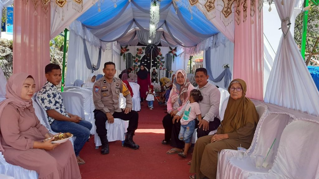 Sebagai Bhabinkamtibmas Aipda Amiruddin hadir di tengah ~ tengah kegiatan masyarakat baik dalam suka muapun duka, tak lupa menyampaikan himbauan Kamtibmas kepada pemilik rumah yang sedang melaksanakan acara resepsi pernikahan, dan juga warga masyarakat lainnya.