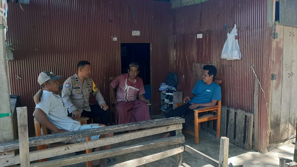 Bhabinkamtibmas dalam kegiatan sambang ke Desa Binaan menyempatkan diri untuk menjumpai warganya, sekaligus menyampaikan pesan~pesan, serta himbauan Kamtibmas kepada warga, sekaligus dapat memperolah informasi siatuasi Kamtibmas.