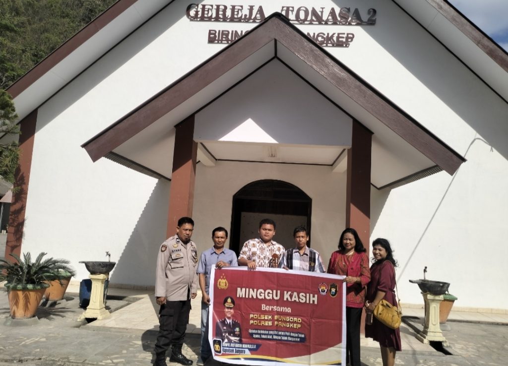 Pangkep- Bertempat di Gereja Oikumene Tonasa II Jln. Anoa No. 39 Desa Biringere Kec. Bungoro Kab. Pangkep, KA SPK Polsek Bungoro Aiptu Syarifuddin Bersama Piket fungsi Tampung Aspirasi Jemaat Gereja Dan Warga melalui Giat Minggu Kasih Pada Minggu Pagi (25/08/24)