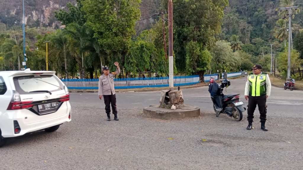 Personil Polsek Balocci bertugas melakukan strong point di pagi hari ditempat tempat rawan terjadinya kemacetan dan pengaturan lalu lintas untuk membantu anak sekolah yang mau beraktivitas menuju kesekolahnya .