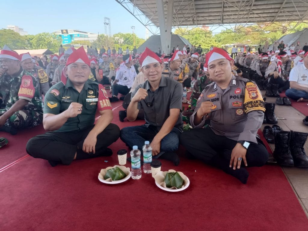 Pangkep — Bhabinkamtibmas Polsek Tondong Tallasa Bripka Abdul Kadir D.Psi.M.M. bersama kepala Desa Bulu Tellue Hariadi,S.Sos. ,Babinsa Sertu Arianto menghadiri kegiatan Cooling System dalam rangka Deklarasi Pilkada Damai oleh Tiga Pilar di wilayah Sulawesi Selatan tahun 2024 yang dilaksanakan di tribun lapangan Karebosi Makassar.