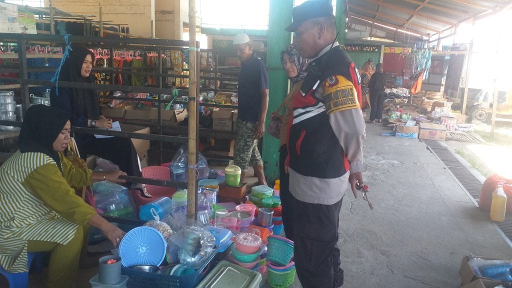 Bhabinkamtibmas Aipda Muhammading  melaksanakan patroli dialogis di pasar serta memberikan himbauan kepada warga agar terhindar dari tindak kejahatan dan sekaligus melakukan cek harga bahan sembako apakah mengalami kenaikan ataupun penurunan harga bahan sembako.